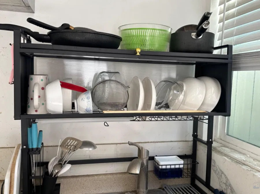 • Gran capacidad: soporta platos, cubiertos, cuchillos, ganchos y más, ¡todo en un solo lugar!